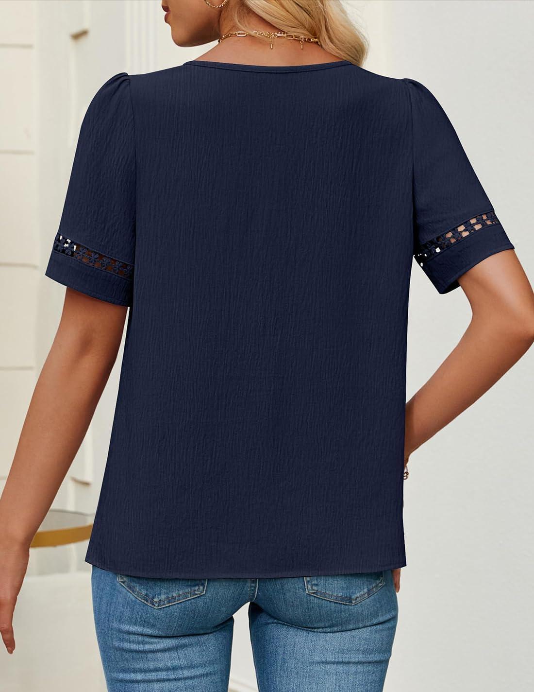 ZESICA Women's Summer Tops Dressy Casual Short Sleeve Blouses Trendy Elegant Shirts(Navy)
