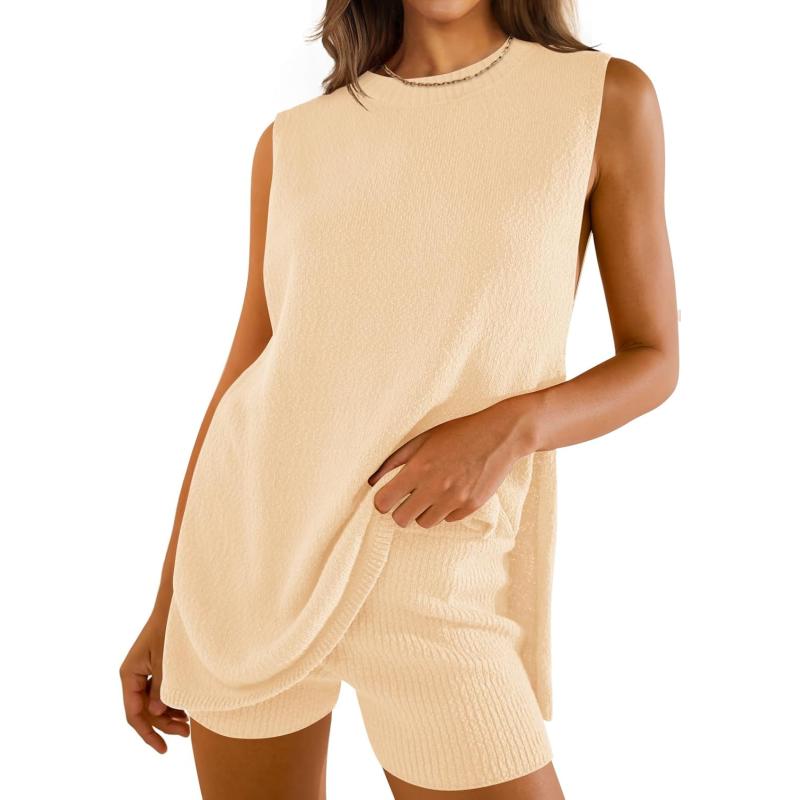 imageZESICA Womens Summer Two Piece Sweater Lounge Sets 2024 Casual Knit Trendy Tunic and Shorts OutfitsApricot
