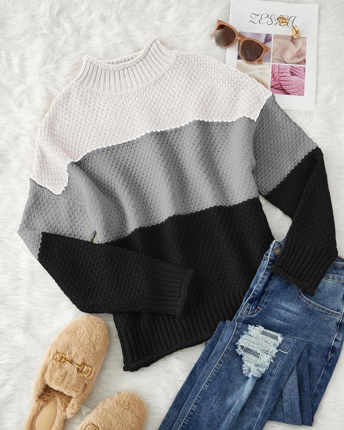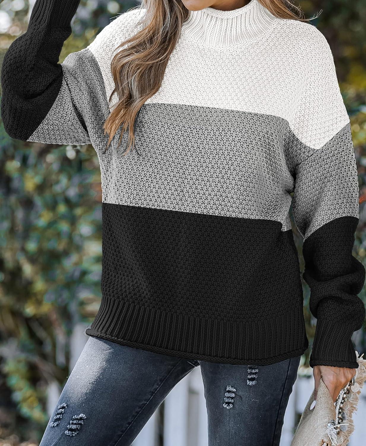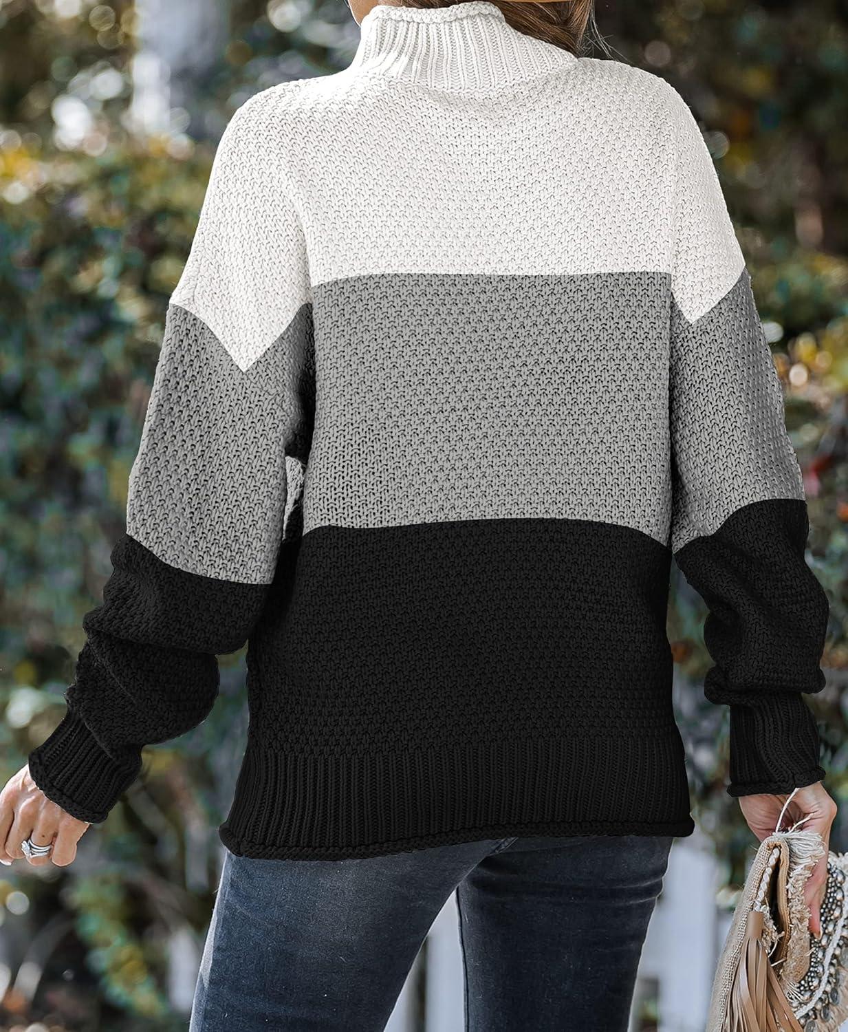 ZESICA Women’s Turtleneck Batwing Sleeve Loose Oversized Chunky Knitted Pullover Sweater Jumper Tops(B&charcoal)