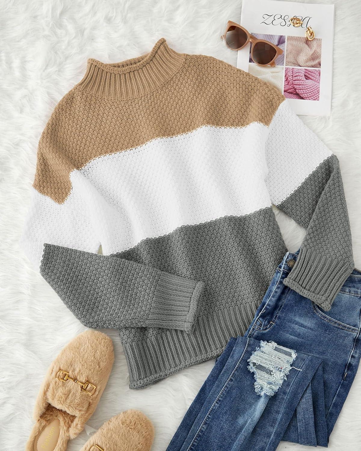 ZESICA Women’s Turtleneck Batwing Sleeve Loose Oversized Chunky Knitted Pullover Sweater Jumper Tops(B Grey)