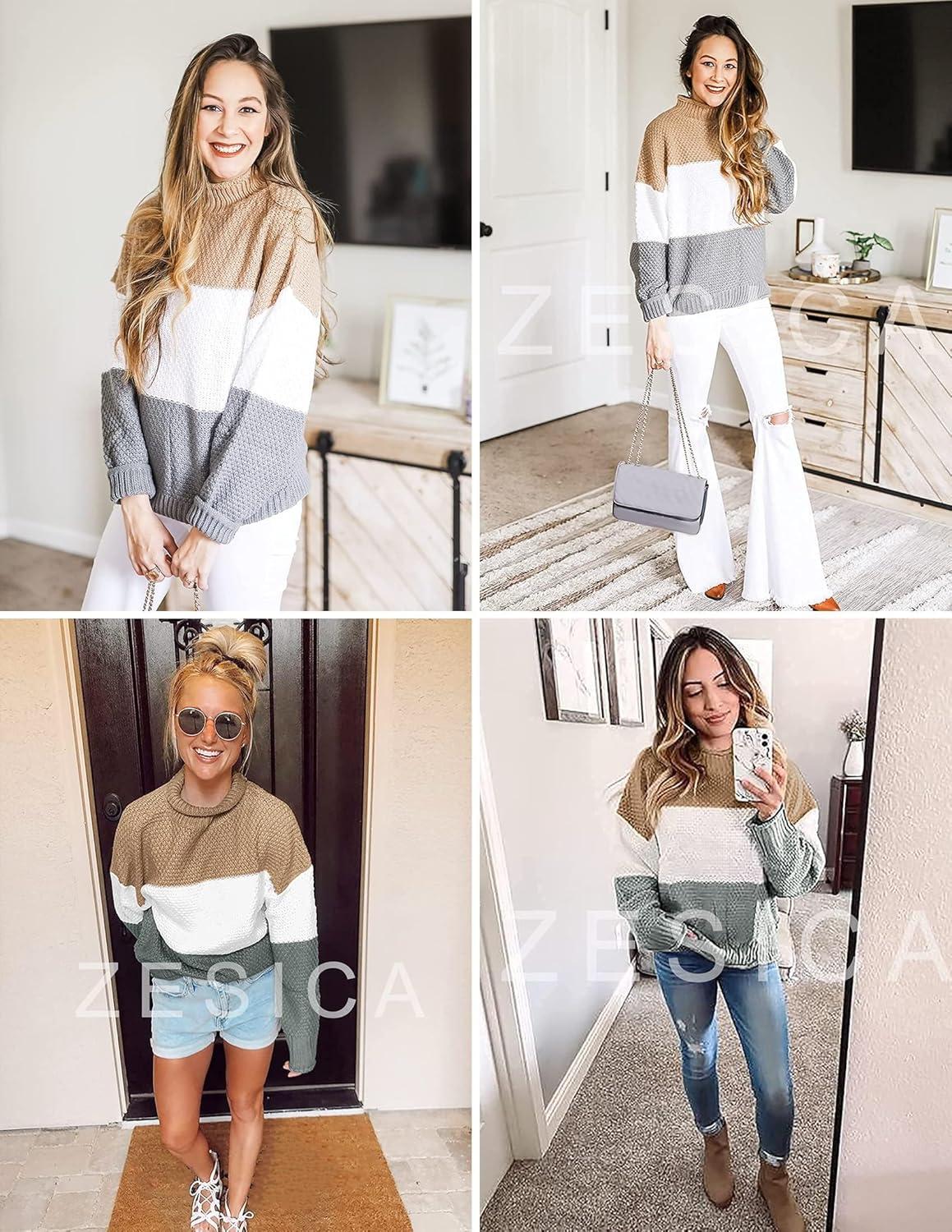 imageZESICA Womens Turtleneck Batwing Sleeve Loose Oversized Chunky Knitted Pullover Sweater Jumper TopsB Grey