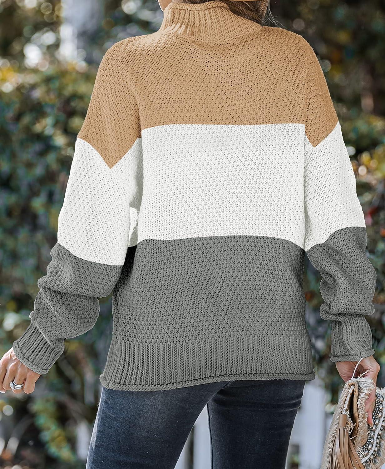 ZESICA Women’s Turtleneck Batwing Sleeve Loose Oversized Chunky Knitted Pullover Sweater Jumper Tops(B&blue)