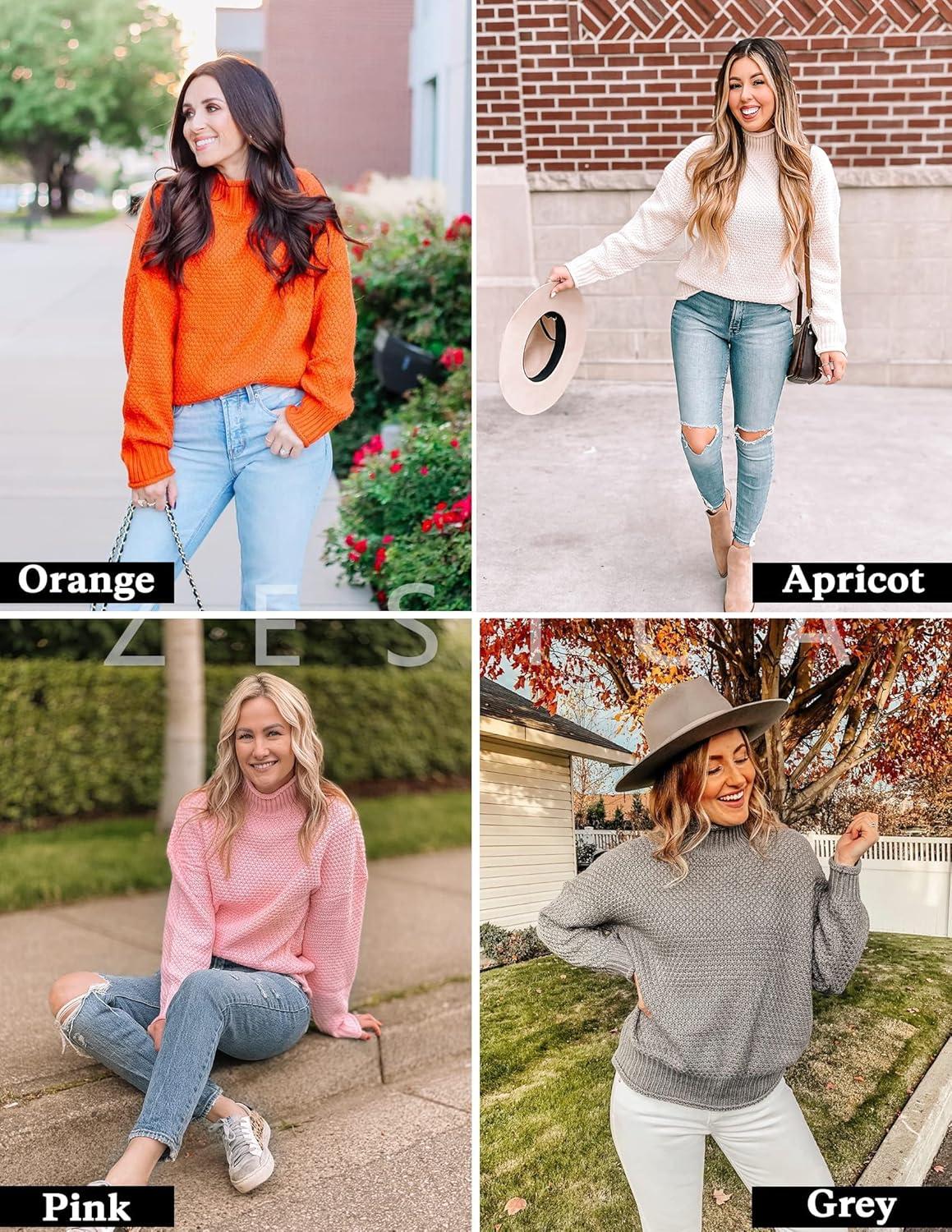 ZESICA Women’s Turtleneck Batwing Sleeve Loose Oversized Chunky Knitted Pullover Sweater Jumper Tops(Rose)