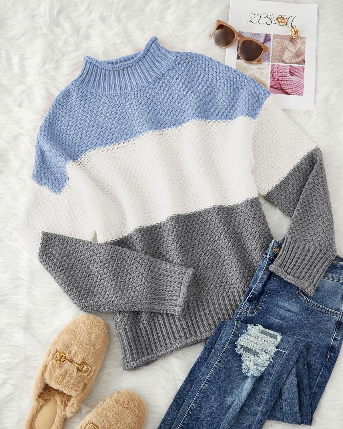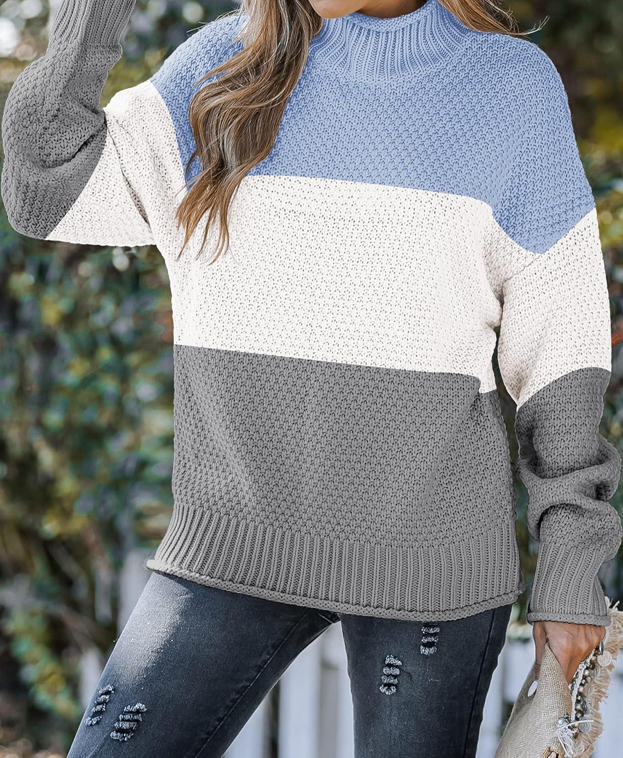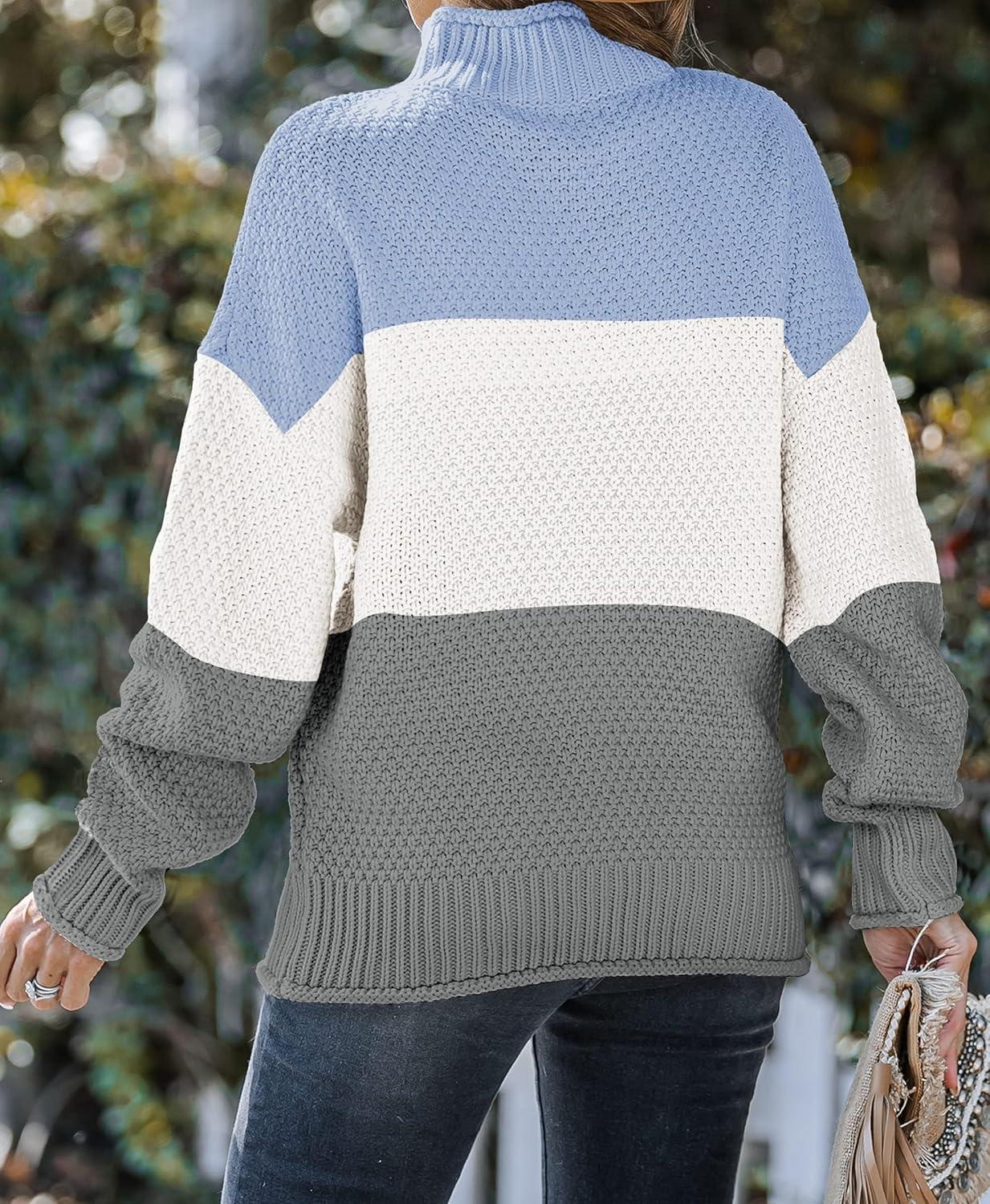 ZESICA Women’s Turtleneck Batwing Sleeve Loose Oversized Chunky Knitted Pullover Sweater Jumper Tops(B&blue)