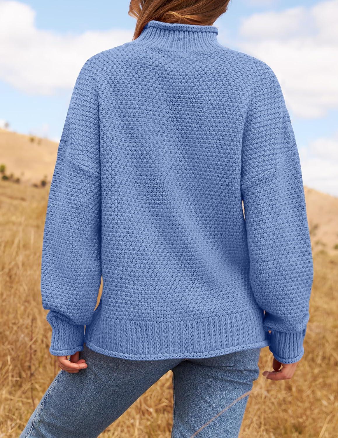 ZESICA Women's Turtleneck Batwing Sleeve Loose Oversized Chunky Knitted Pullover Sweater Jumper Tops(Blue)