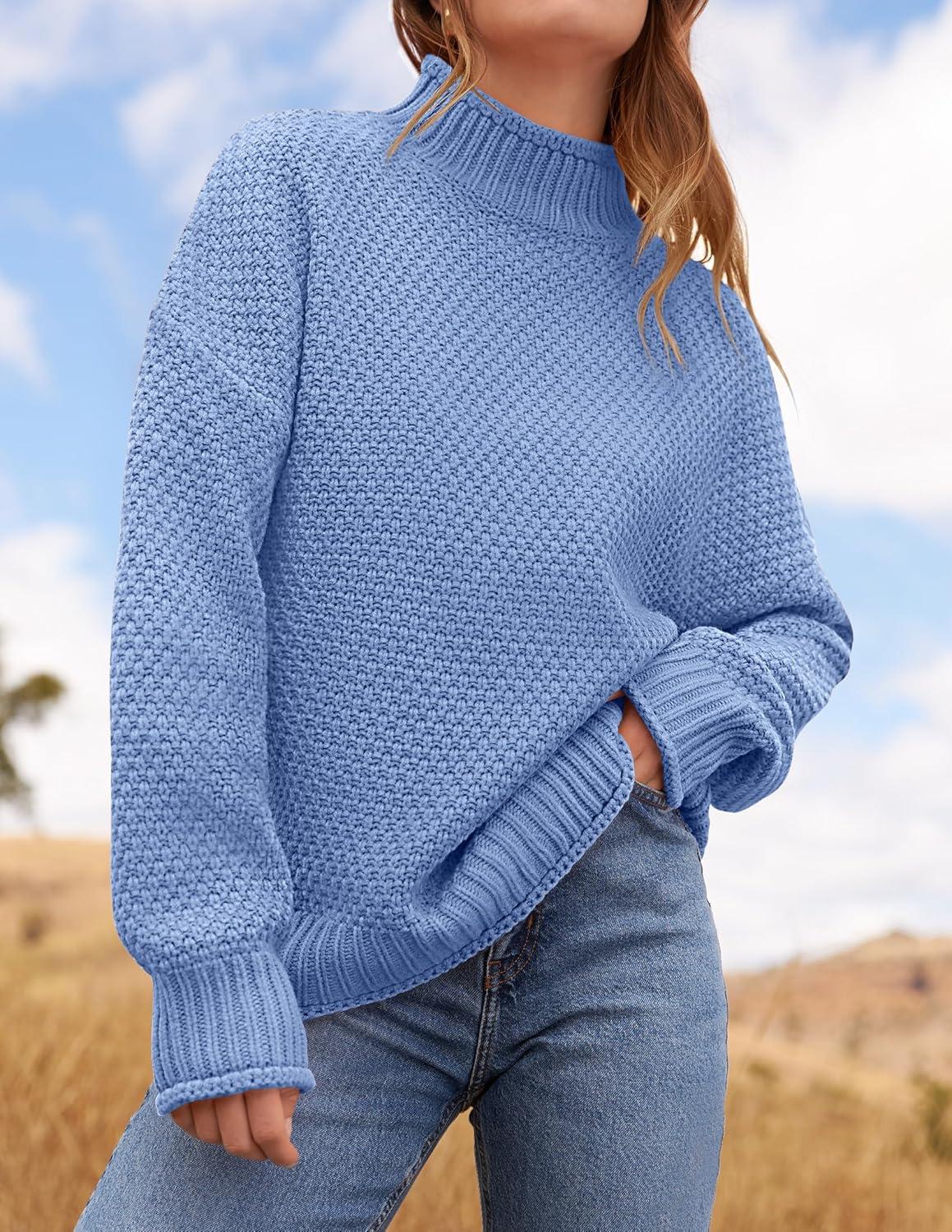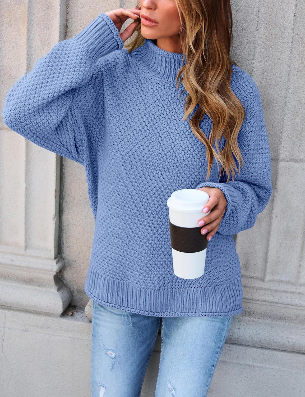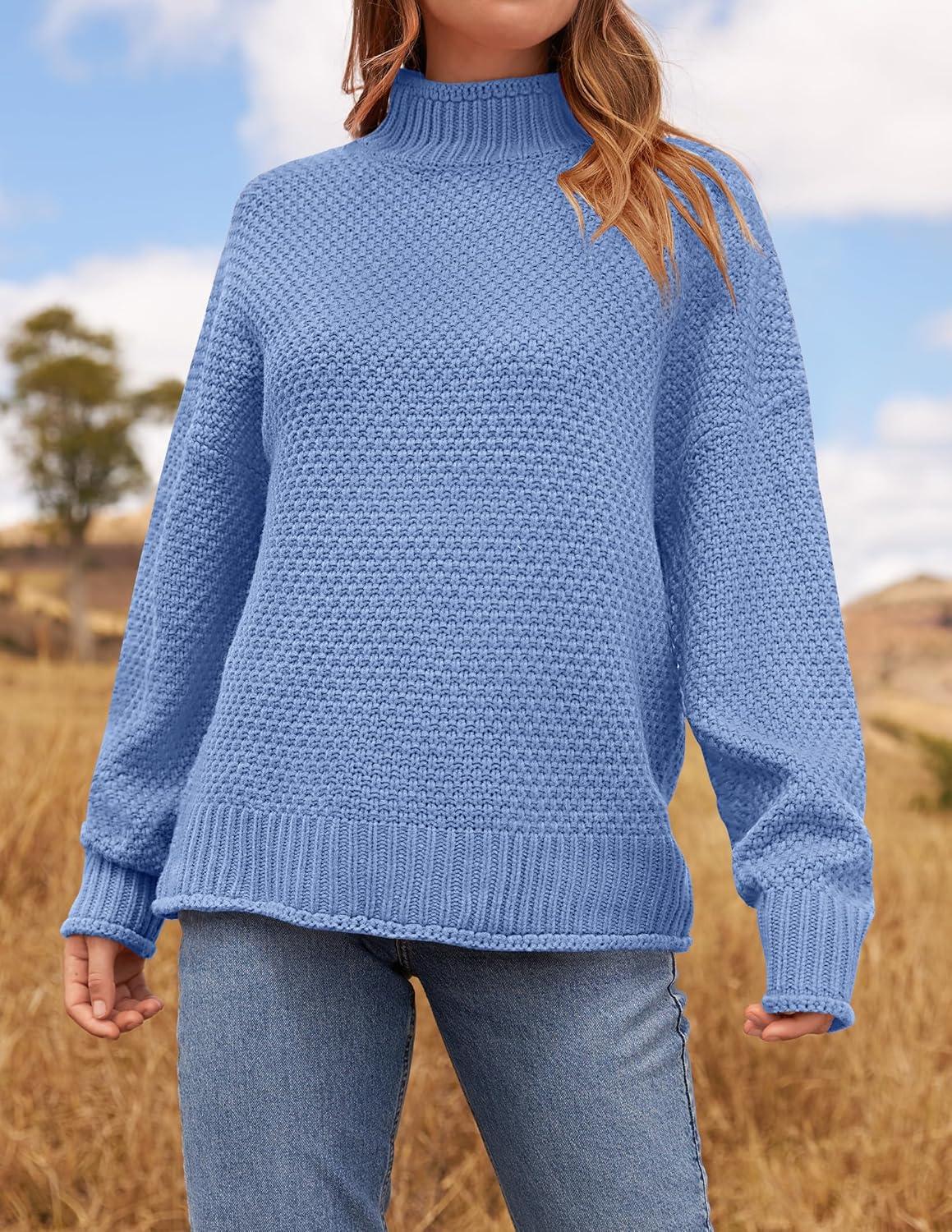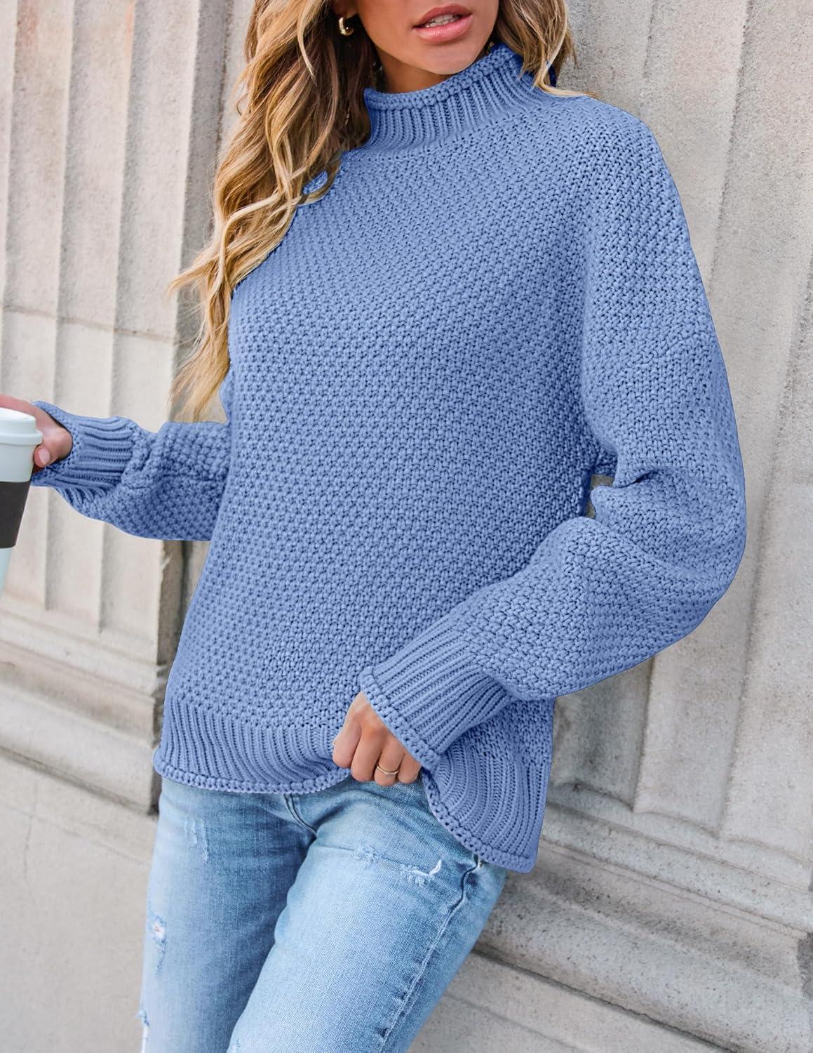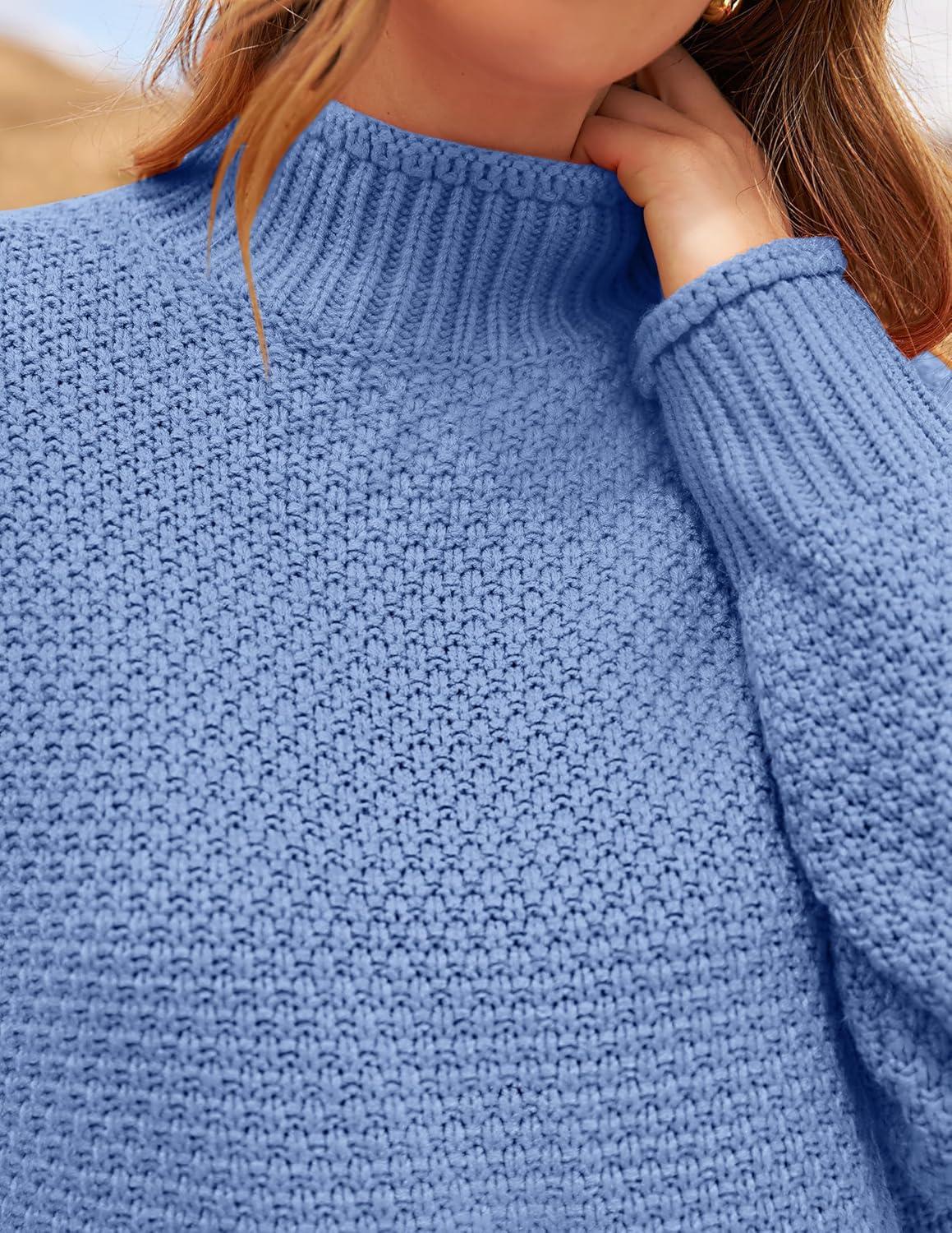 ZESICA Women’s Turtleneck Batwing Sleeve Loose Oversized Chunky Knitted Pullover Sweater Jumper Tops(Blue)