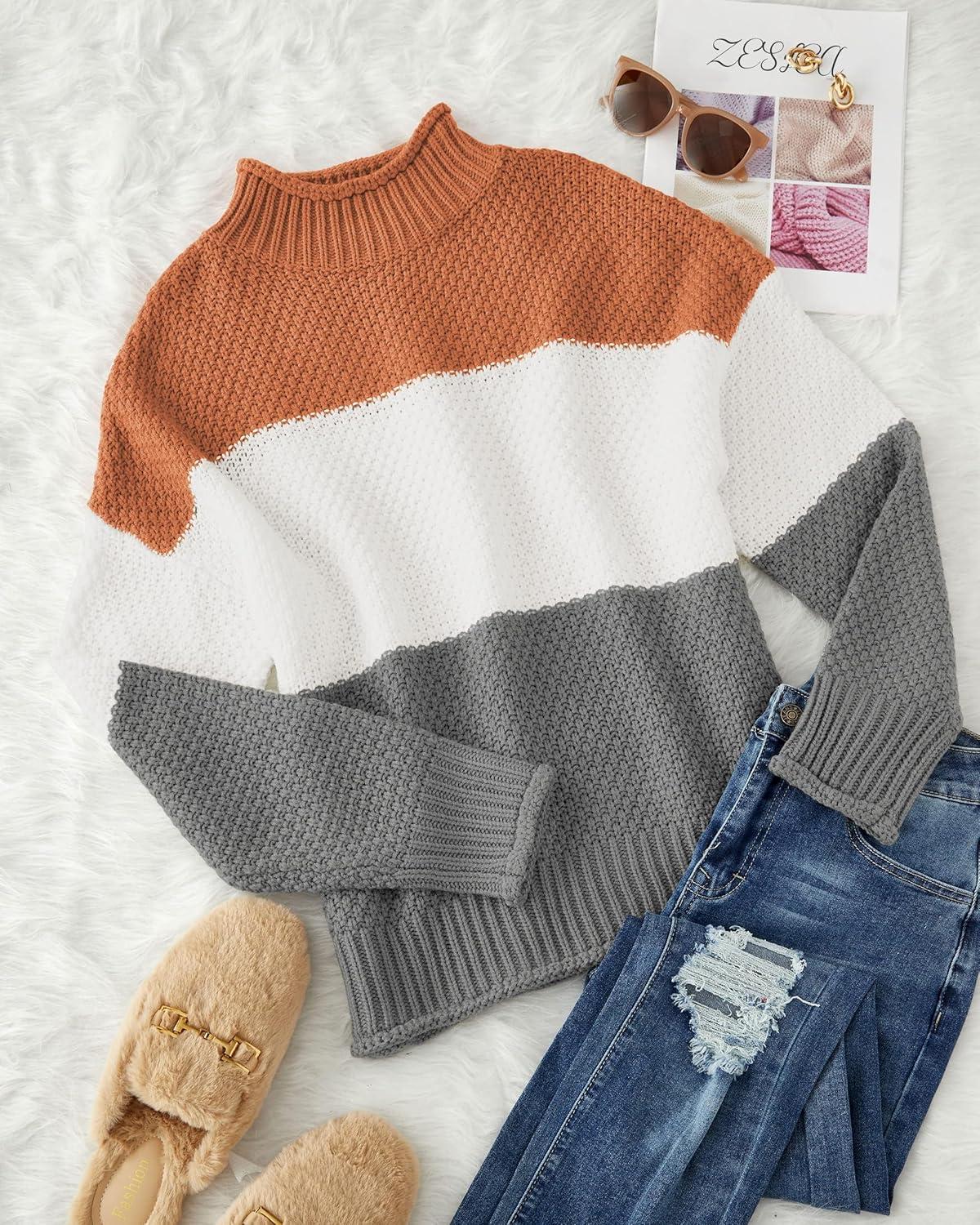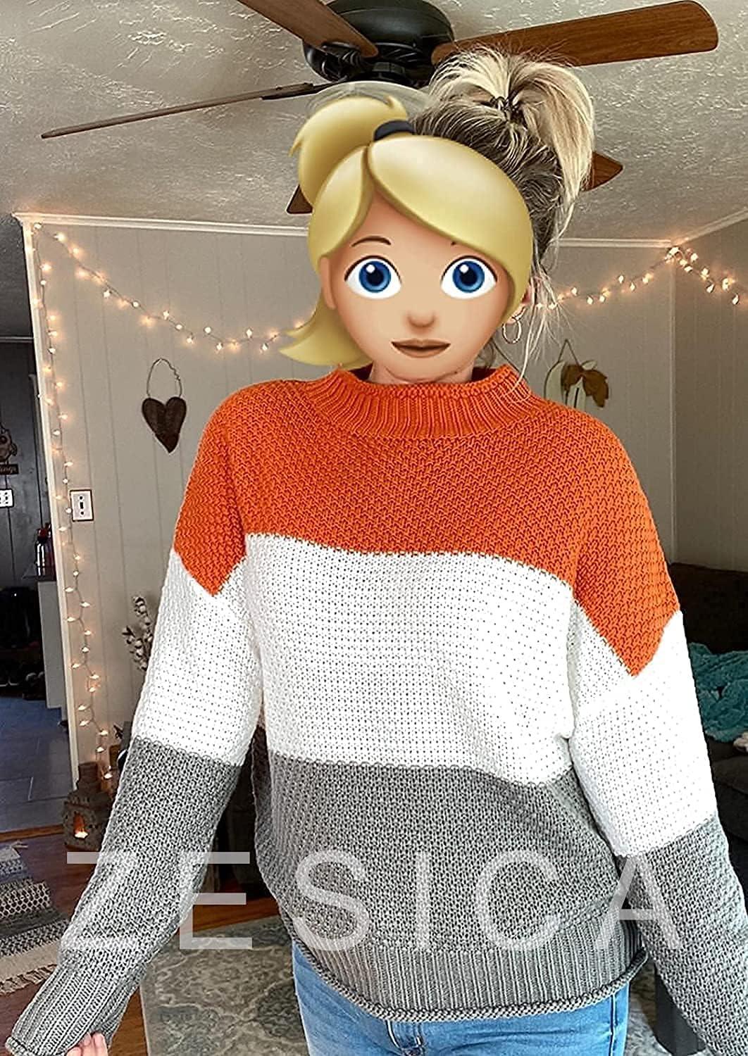 ZESICA Women’s Turtleneck Batwing Sleeve Loose Oversized Chunky Knitted Pullover Sweater Jumper Tops(B&orange)