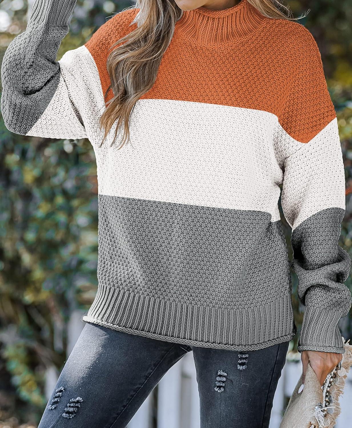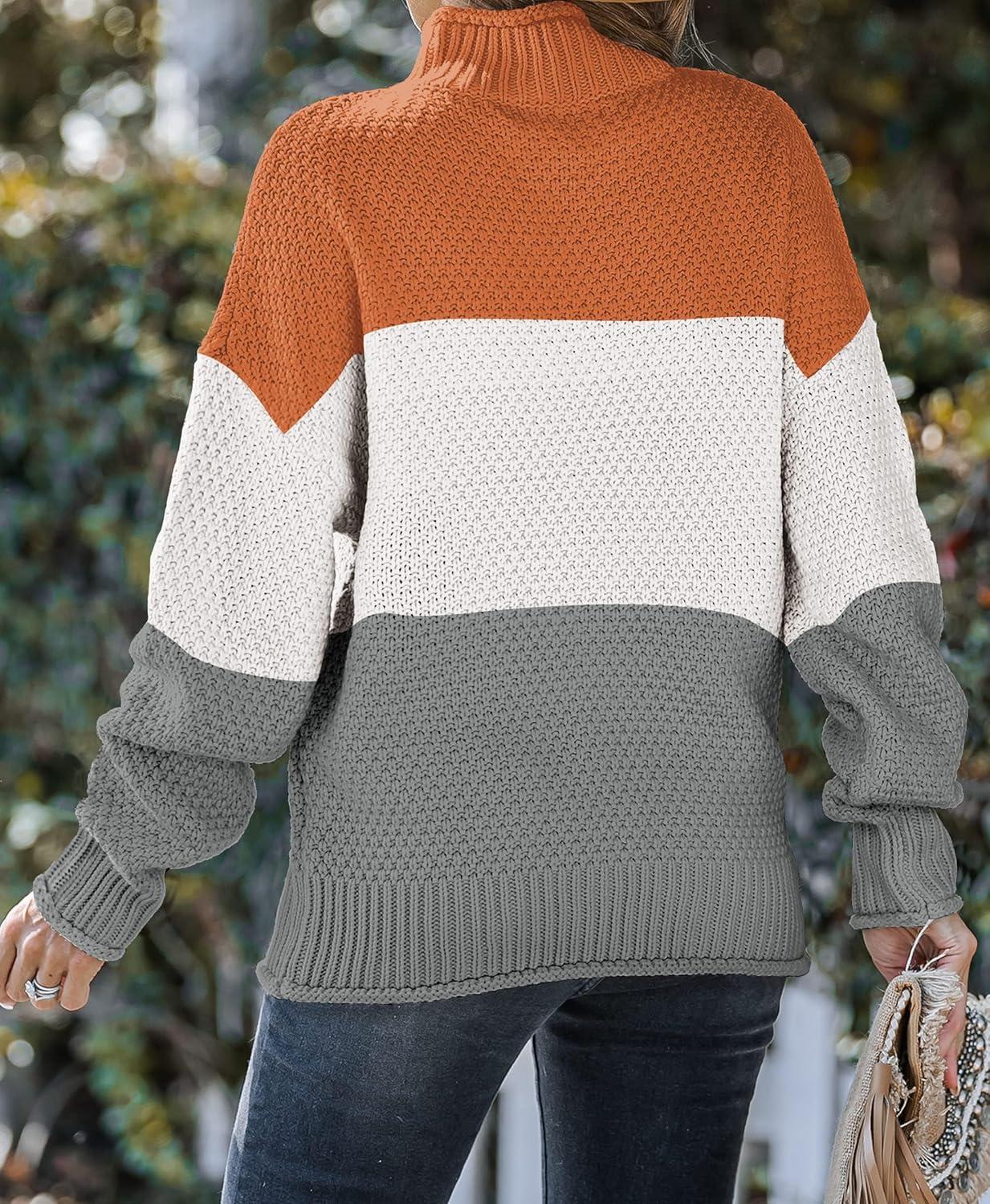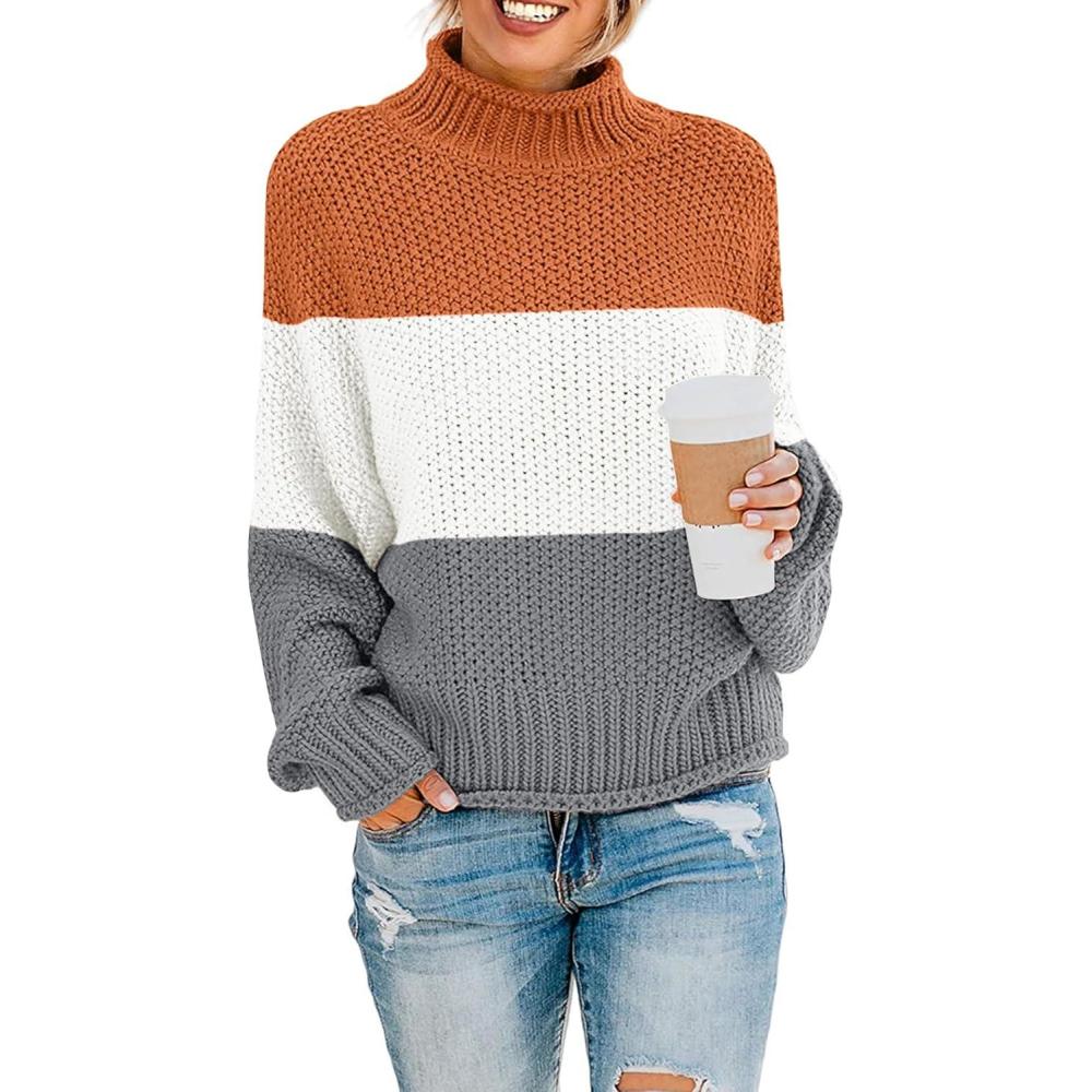 ZESICA Women's Turtleneck Batwing Sleeve Loose Oversized Chunky Knitted Pullover Sweater Jumper Tops(B&orange)