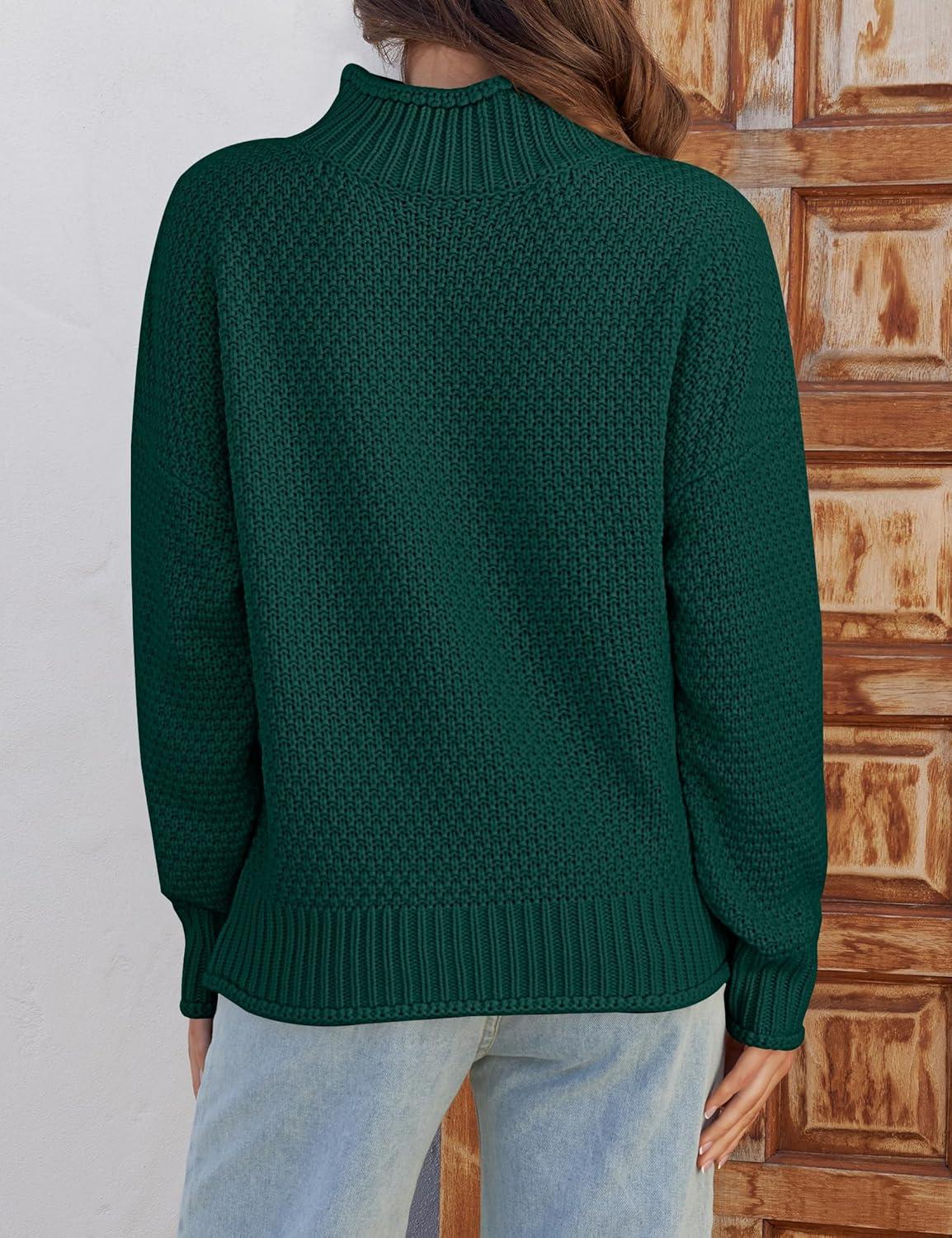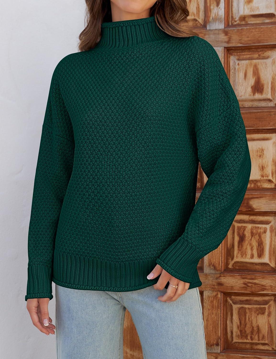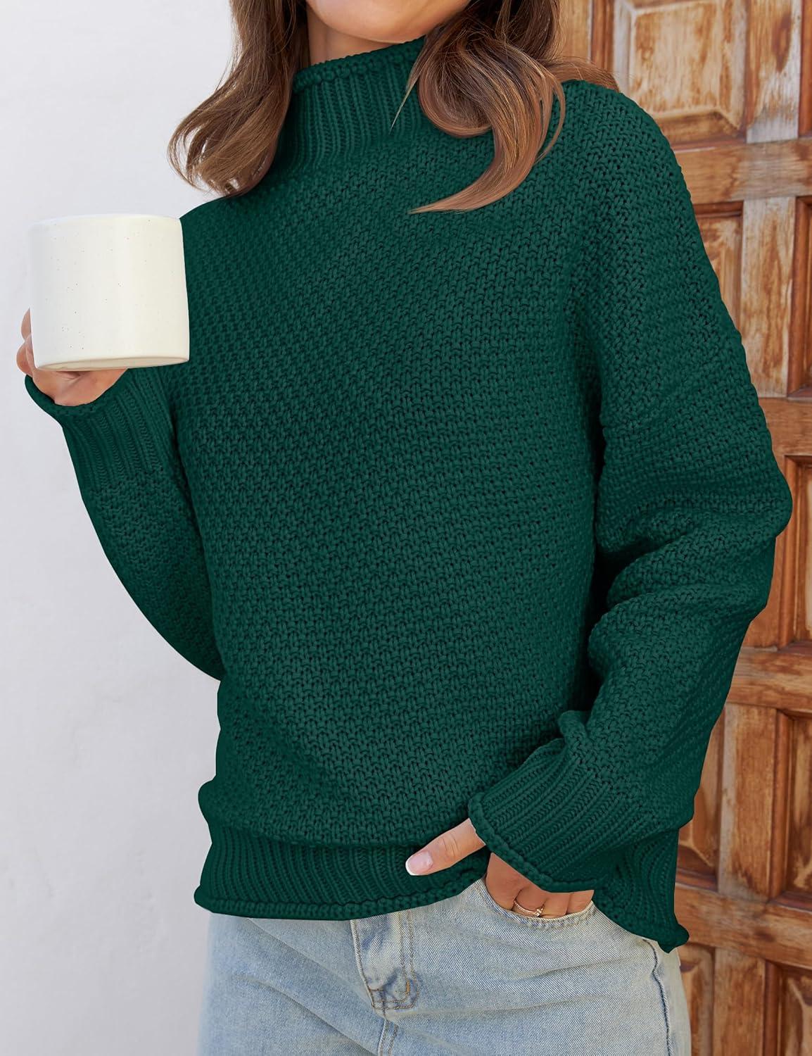 ZESICA Women's Turtleneck Batwing Sleeve Loose Oversized Chunky Knitted Pullover Sweater Jumper Tops(Forestgreen)