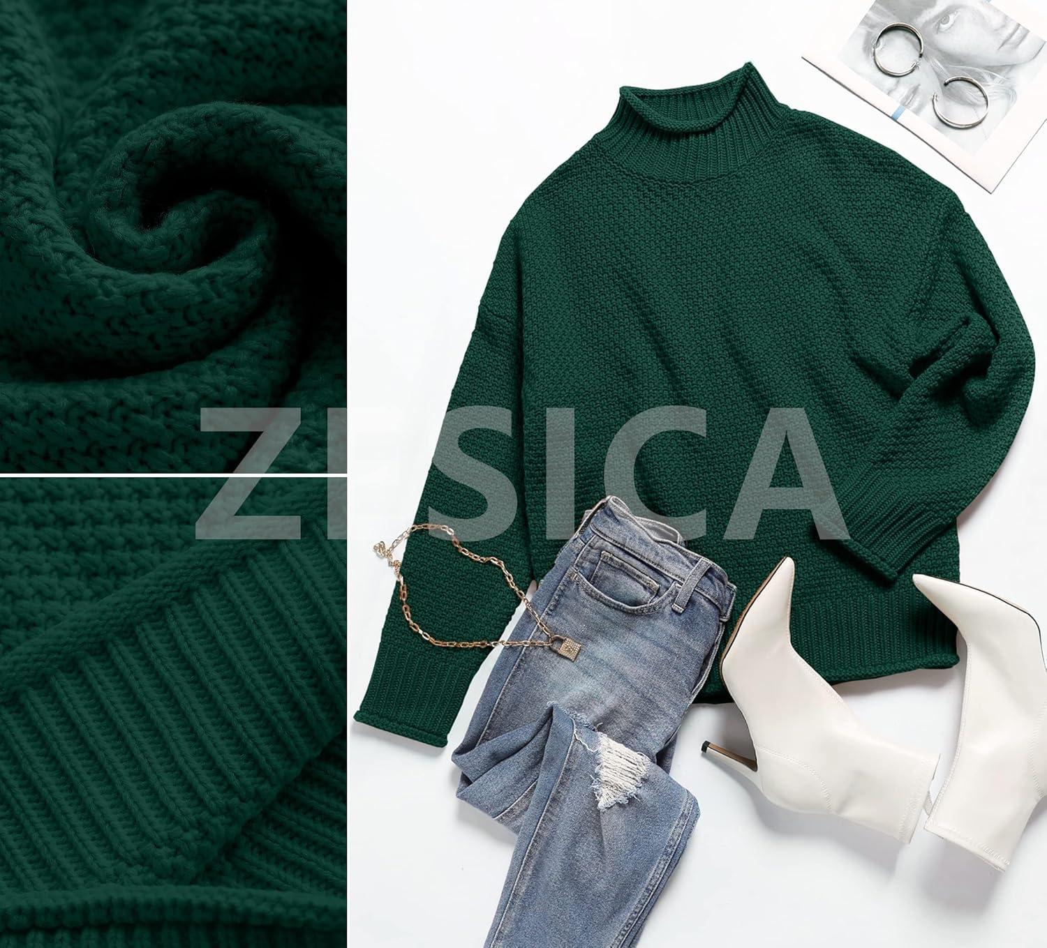 ZESICA Women’s Turtleneck Batwing Sleeve Loose Oversized Chunky Knitted Pullover Sweater Jumper Tops(Forestgreen)