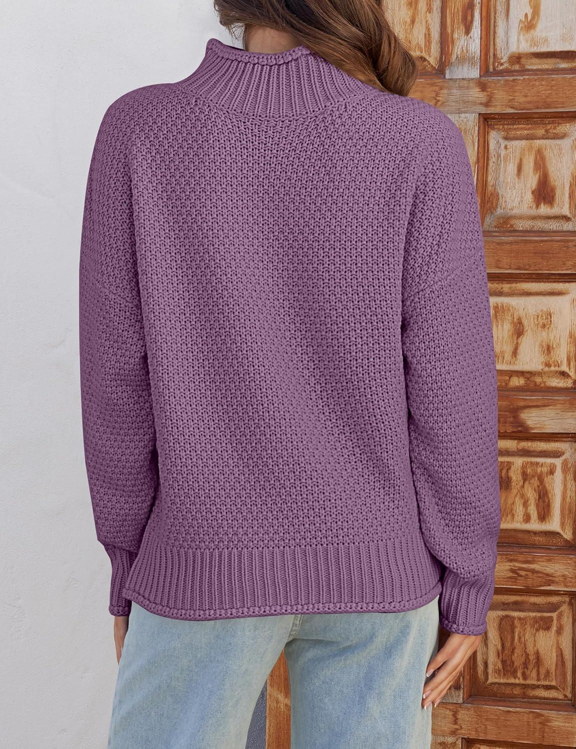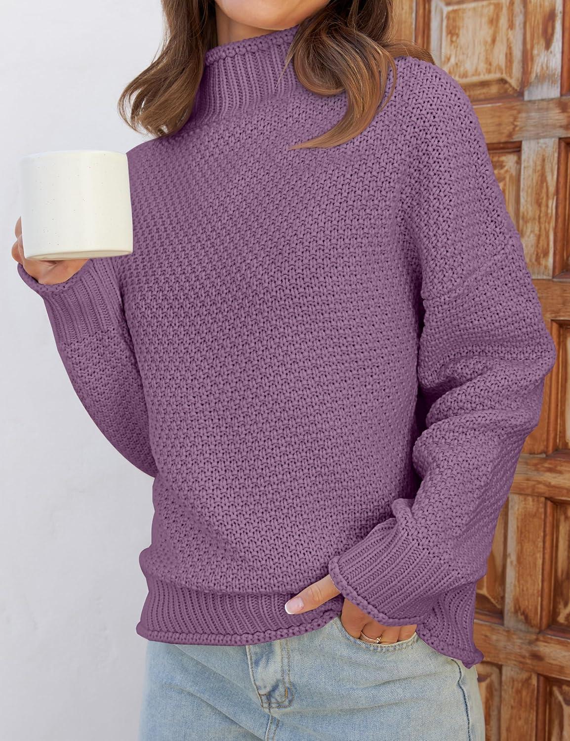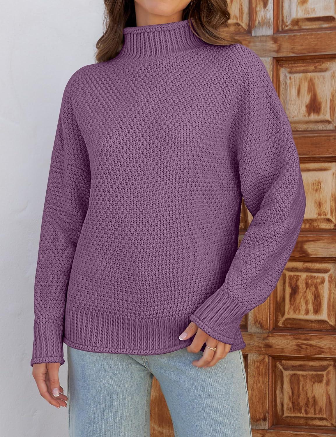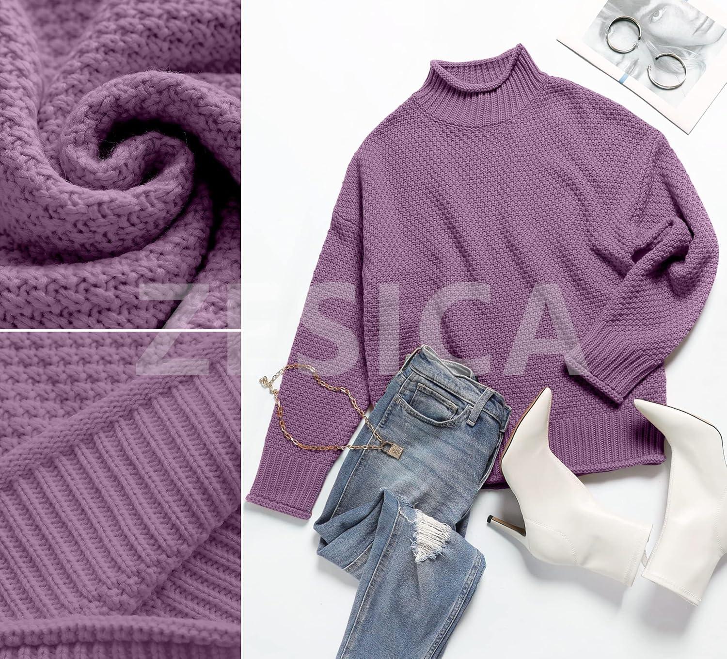 ZESICA Women’s Turtleneck Batwing Sleeve Loose Oversized Chunky Knitted Pullover Sweater Jumper Tops(Purple)
