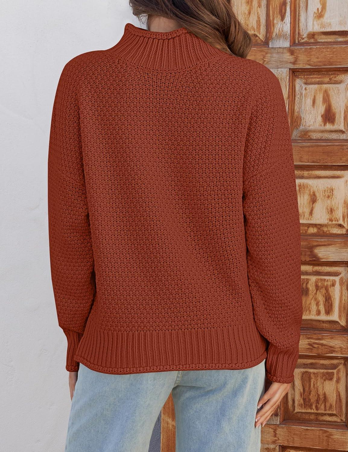 ZESICA Women’s Turtleneck Batwing Sleeve Loose Oversized Chunky Knitted Pullover Sweater Jumper Tops(Rust)