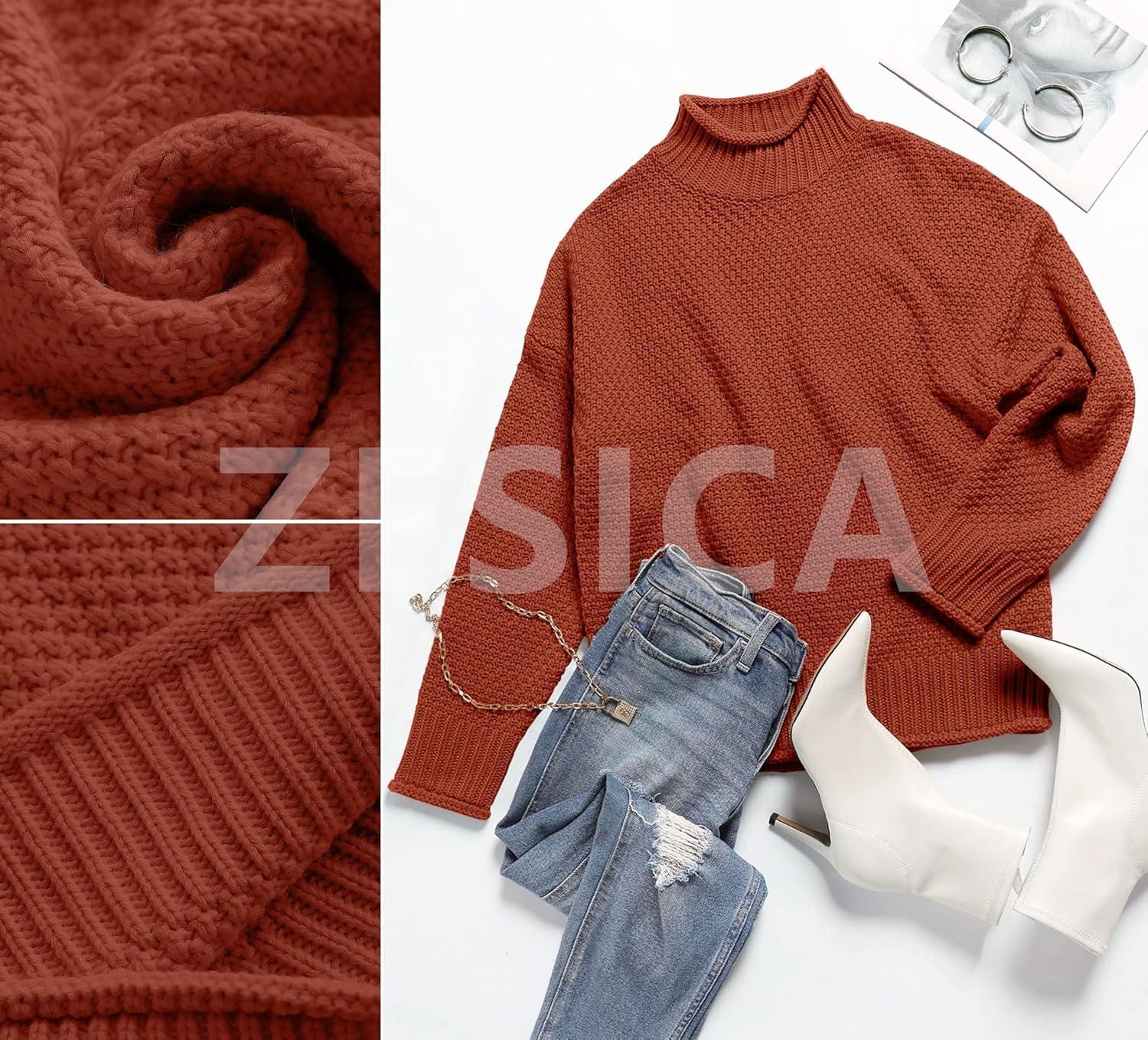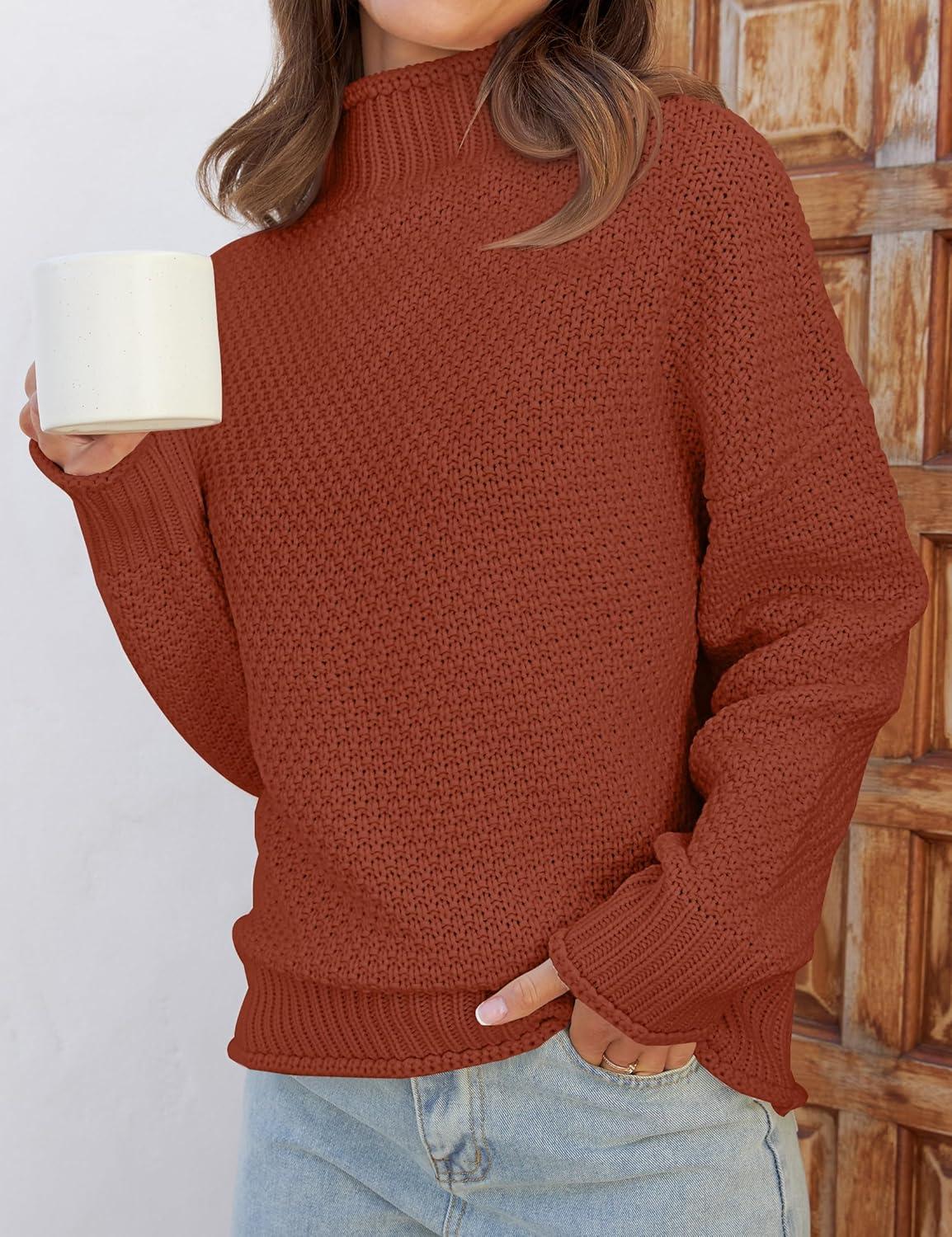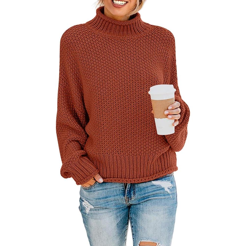 imageZESICA Womens Turtleneck Batwing Sleeve Loose Oversized Chunky Knitted Pullover Sweater Jumper TopsRust