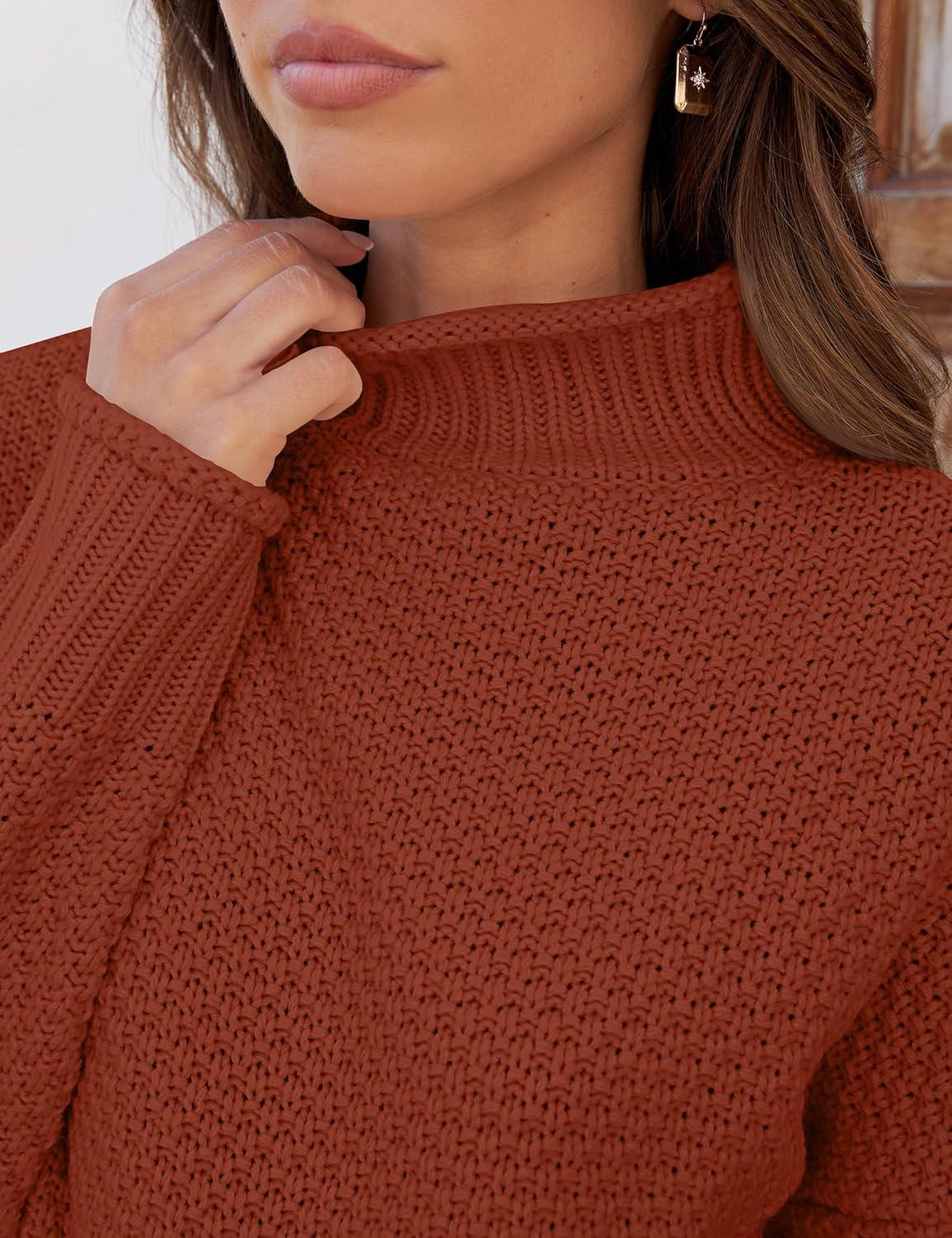 ZESICA Women's Turtleneck Batwing Sleeve Loose Oversized Chunky Knitted Pullover Sweater Jumper Tops(Rust)