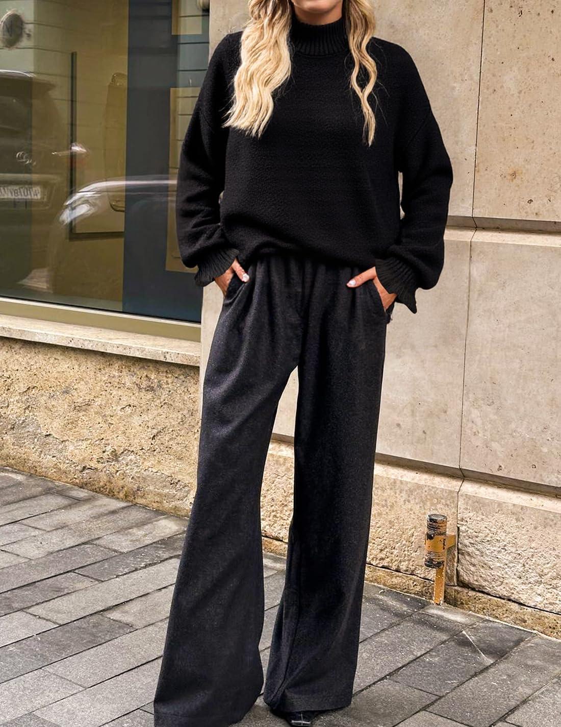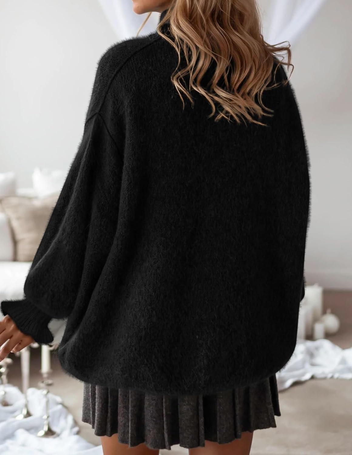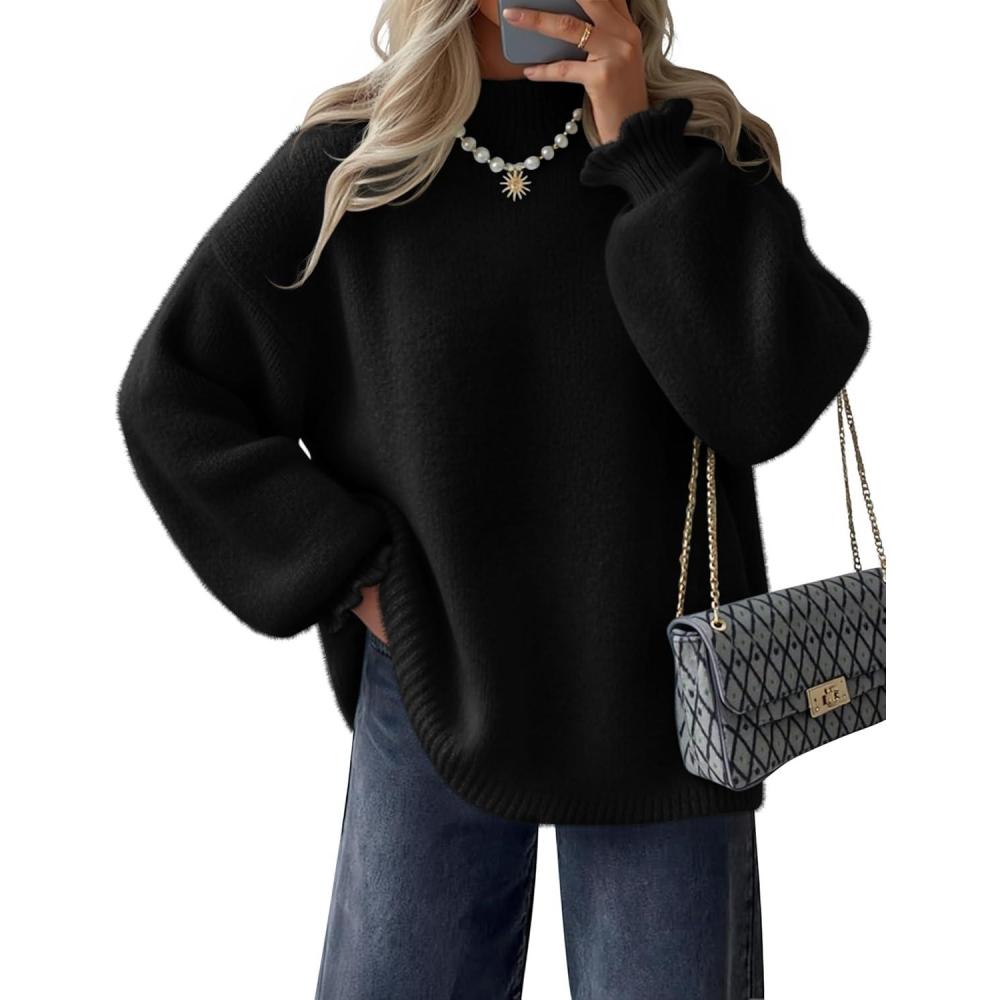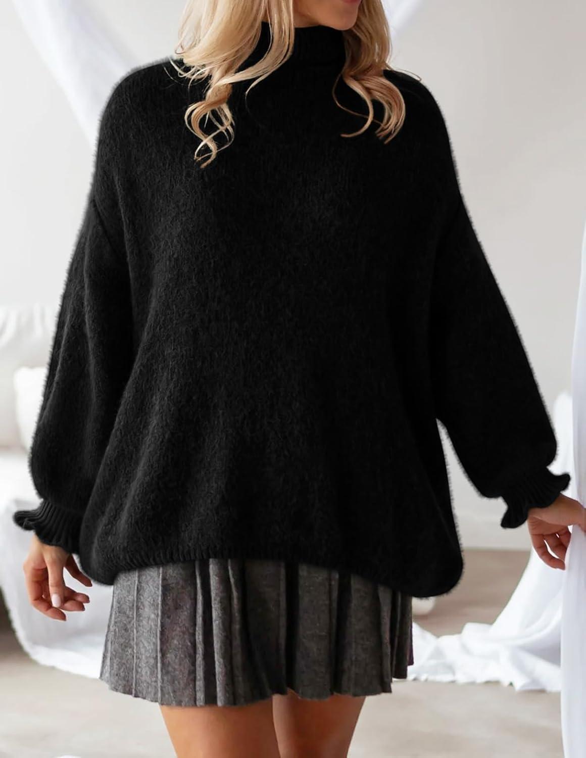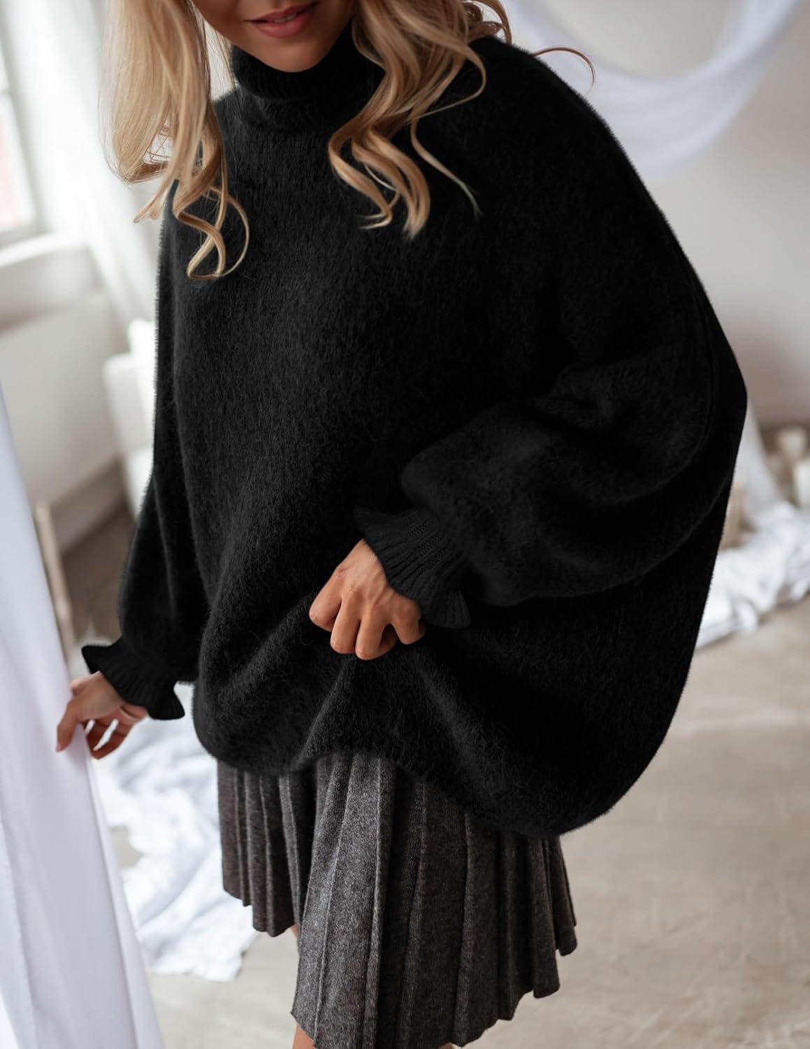 ZESICA Women’s Turtleneck Sweaters Dressy Casual Oversized Long Sleeve Knitted Chunky Pullover Sweater Jumper Tops(Black)